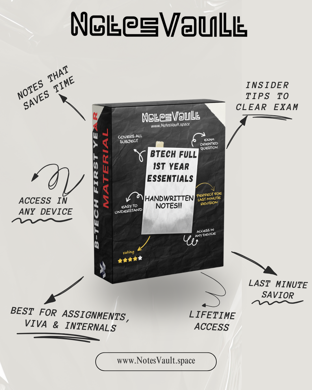 The BTech 1st Year Notes PDF is the ultimate study package for engineering students who want high-quality, exam-ready notes in one place. It covers all subjects of the 1st year with well-organized notes, previous year question papers (PYQs), and important topics to make your preparation easy and effective.